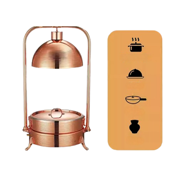 नया इलेक्ट्रोप्लेटेड गोल्ड स्टेनलेस स्टील टेलीस्कोपिक फूड बफेट उठाना दीपक वाणिज्यिक पका हुआ गर्म भोजन इन्सुलेशन लैंप